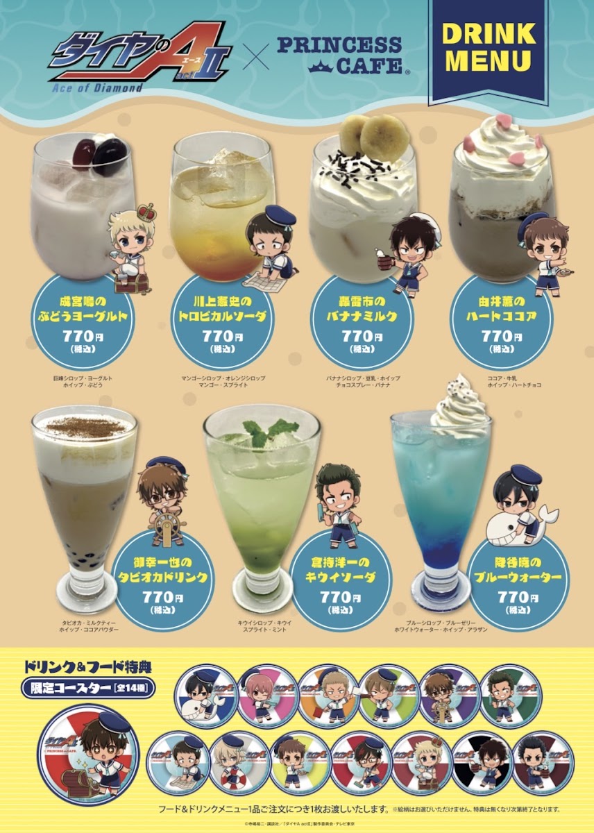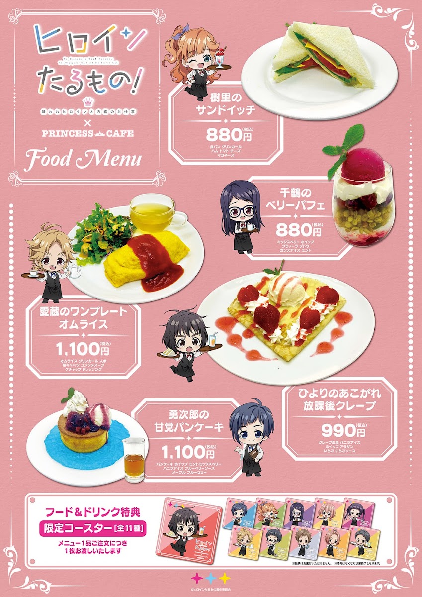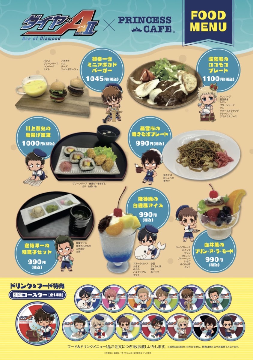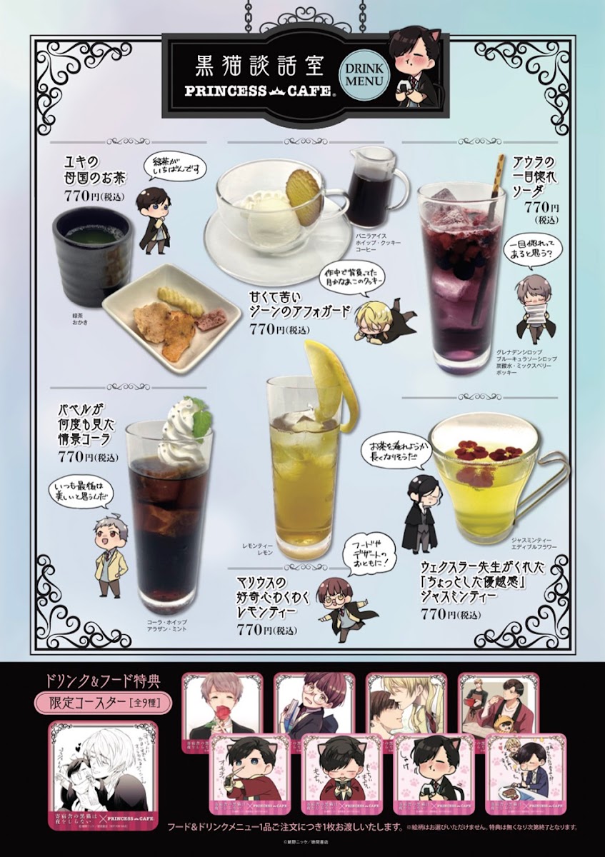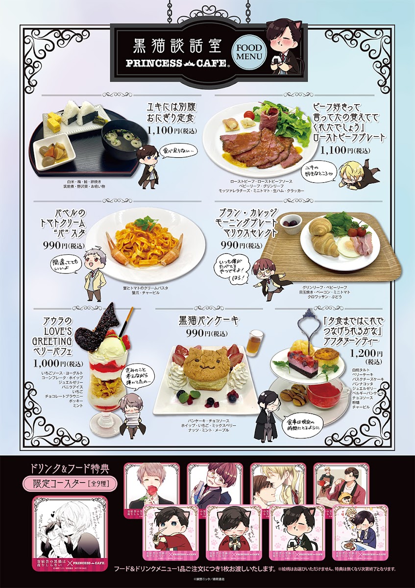The menu at Princess Cafe Ikebukuro features a variety of themed food and drink items, organized to cater to different tastes and occasions. Visitors can expect a selection of savory dishes, sweets, and specialty beverages that reflect the cafe’s current collaboration themes.